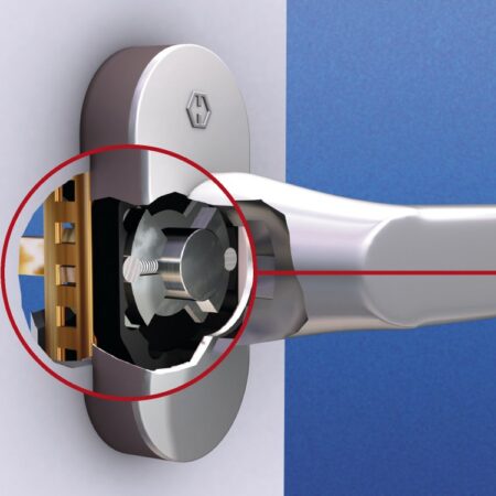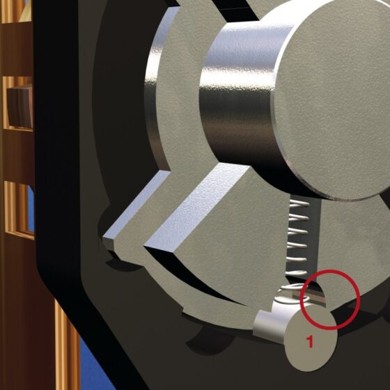 Lorsque vous tournez la poignée, les goupilles de sécurité (1) montées sur ressort s'engagent dans des évidements spéciaux prévus dans le logement (2) et produisent alors le cliquetis typique de la poignée Secustik, le plus « sécurité » qui s'entend.