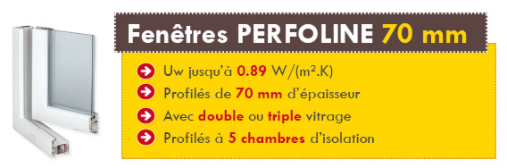 Spécialement conçue pour d'adapter au neuf comme à la rénovation, la Perfoline 70 est un porduit complet et performant. Avec un large choix de dormants adaptés au marché français, la Perfoline 70 répond ainsi aussi bien aux exigences des bâtiments à basse consommation d'énergie (BBC) qu'aux nouvelles exigences des chantiers de rénovation.