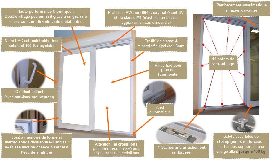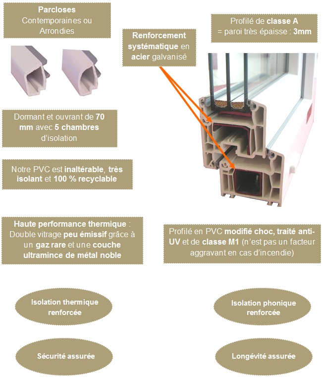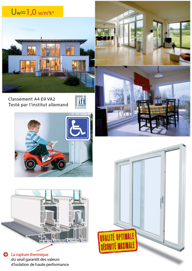 Produit extrêmement performant sur le plan de l’AEV, de l’isolation thermique, acoustique, de la résistance aux chocs, aux variations climatiques et de la tenue dans le temps.
