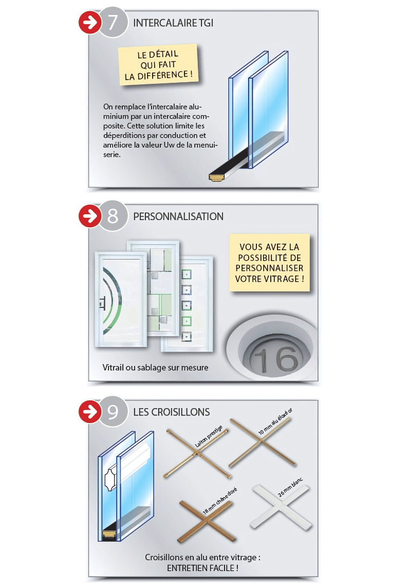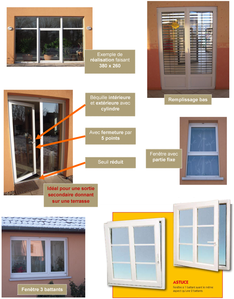 Vous pouvez personnaliser vos portes fenêtres selon vos goûts. Nous pouvons réaliser vos portes avec exactement le même style utilisé pour vos fenêtres. Exemple de personnalisation (aperçu ci-dessous) :