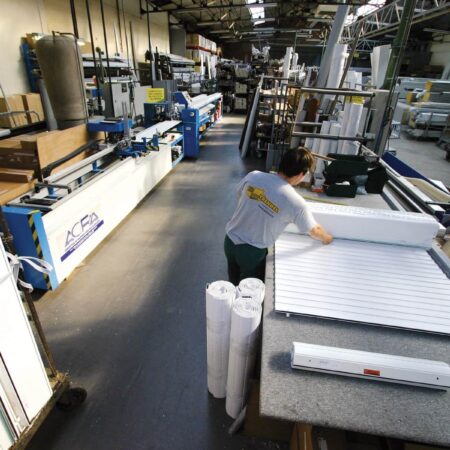 Plaxage : technique qui consiste à coller à chaud un film décor en PVC d’une épaisseur de 20µ sur un profilé PVC.