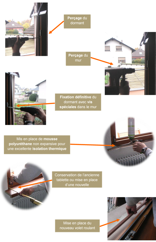 Pose entre tableau : Pose en tunnel, dans l’épaisseur du mur, dans l’encadrement. Dite aussi pose monolithique, cette technique de mise en oeuvre millénaire est classique dans tous les pays.